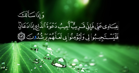 و إذا سألک عبادی عنی فإنی قریب أجیب دعوة الداع إذا دعان فلیستجیبوا لی ولیؤمنوا بی لعلهم یرشدون