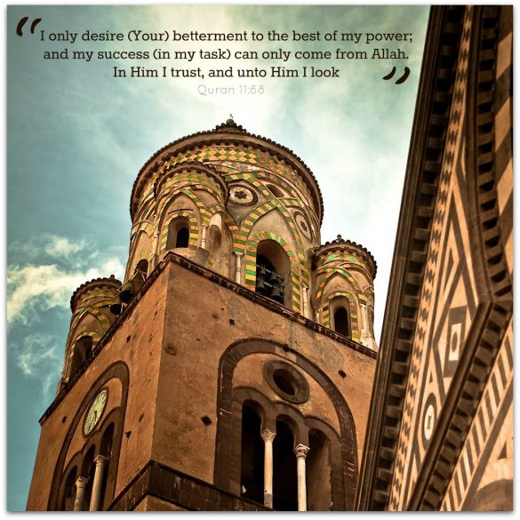 I only desire (Your) betterment to the best of my power; and my success (in my task) can only come from Allah. In Him I trust, and unto Him I look. (Quran 11:88)