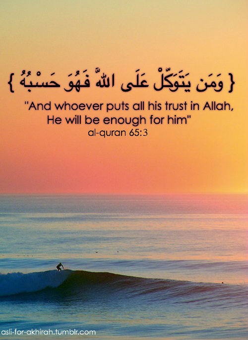 "And whoever puts all his trust in Allah, He will be enough for him" Quran 65:3