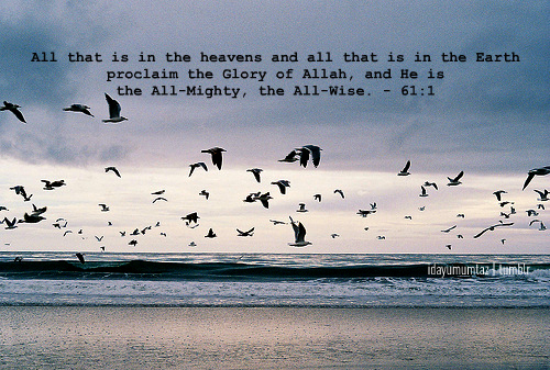 All that is in the heavens and all that is in the earth proclaim the Glory of Allah, and He is the All-Mighty, the All-Wise. - 61:1
